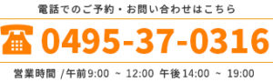 営業時間 / AM 9:00~12:00 PM 14:30~19:30
